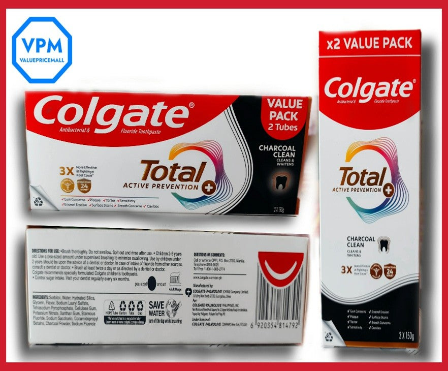 •Colgate Total Charcoal Clean Toothpaste 150g Twin Pack provides deep cleaning and whole mouth protection...