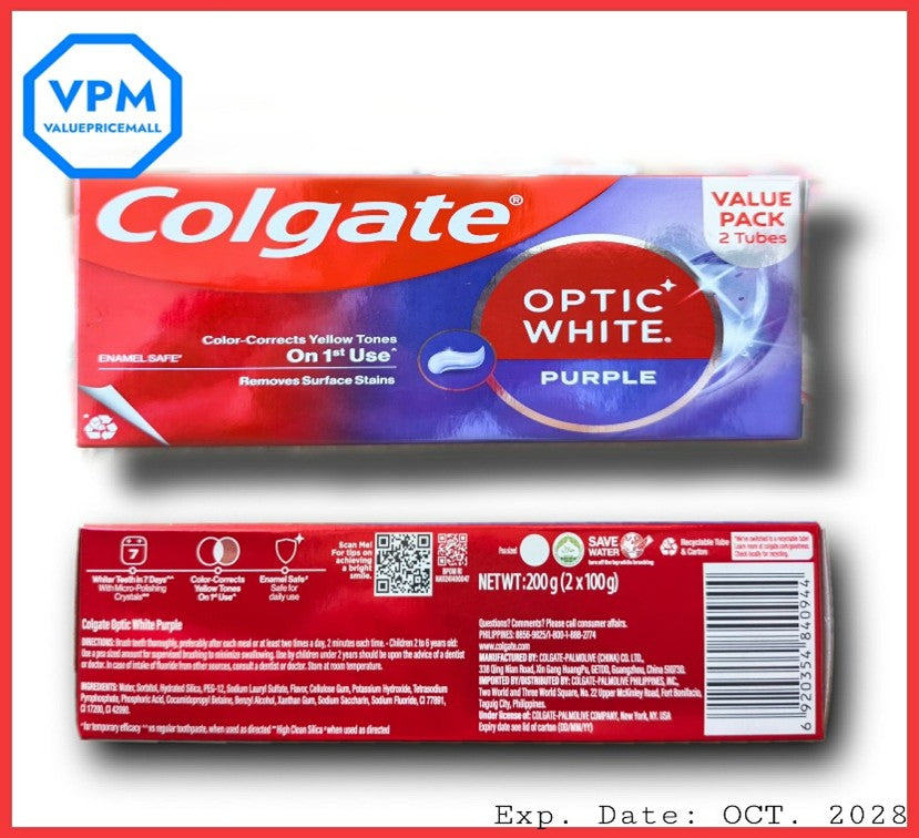 •Value twin pack (2 × 100g tubes) Colgate Optic White Purple Toothpaste 100g Twin Pack...